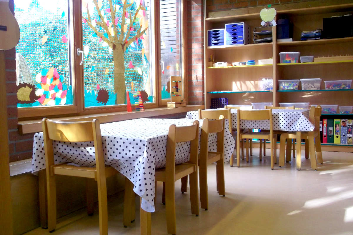 Für Intensivierungs- und Kleingruppenarbeiten ist jeder Gruppe ein eigener Nebenraum zugeteilt. Dies stellt die methodische Arbeit auf breite Säulen der Möglichkeiten, die wir vielfältig nutzen.